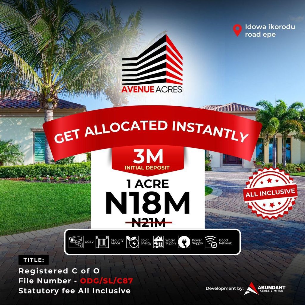 With Avenue Acres by Abundantacreslimited, securing your piece of Lagos has never been easier or more reliable.