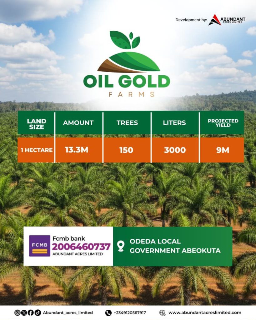 MAKE 600K EVERY YEAR FROM A PLOT AND 3.6M FROM AN ACRE JUST BY OWNING A PIECE OF OIL GOLD FARM TODAY
